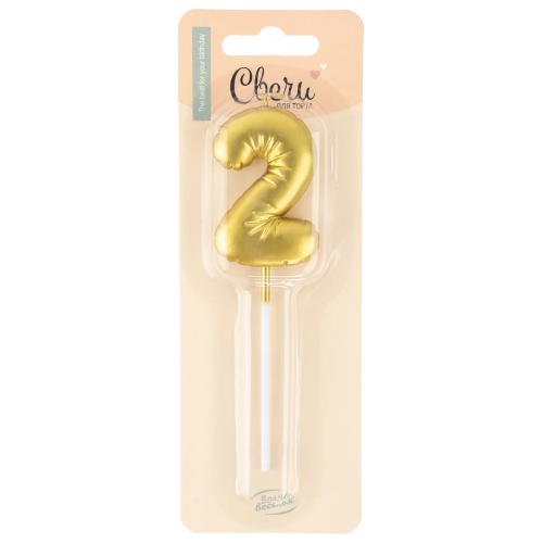 Свеча Цифра, 2 Воздушный шарик, на шпажке, Золото, Металлик, 5,5 см, 1 шт. с держат., 803252