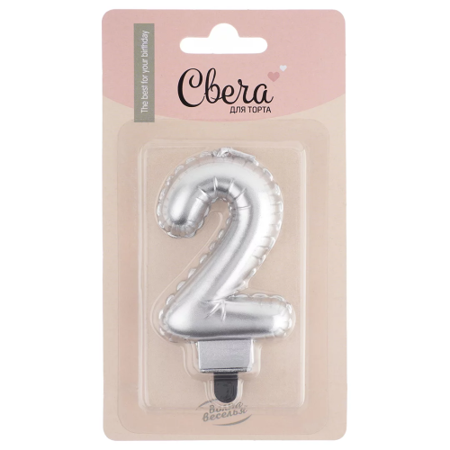 Свеча Цифра, 2 Воздушный шарик, Серебро, Металлик, 5*7 + 1 см, 1 шт. с держат., 623952