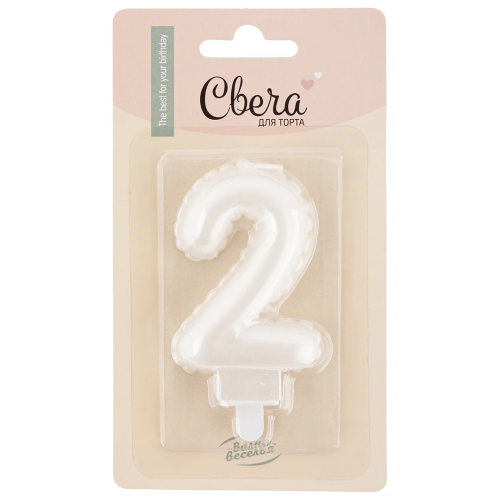 Свеча Цифра, 2 Воздушный шарик, Жемчужный, Перламутр, 5*7 + 1 см, 1 шт., 639262