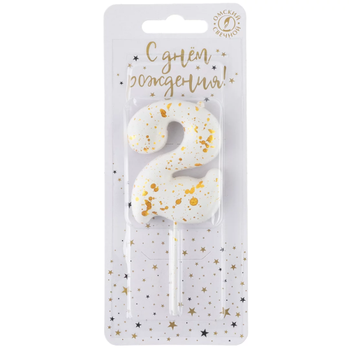 Свеча Цифра, 2 Золотые брызги, на шпажке, Белый, Металлик, 4,3 + 5,2 см, 1 шт. с держат., 5642