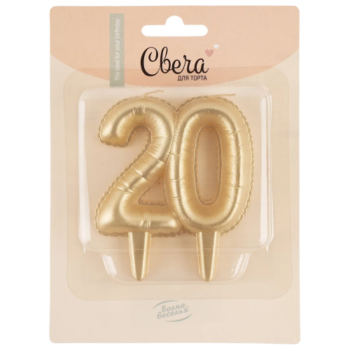 Свеча Цифра, 20 Юбилейные шарики, Золото, 8 см, 1 шт., 2121