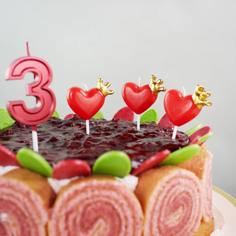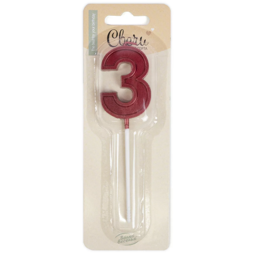 Свеча Цифра, 3 Чистая линия, на шпажке, Красный, 4,7*6,7 + 7 см, 1 шт. с держат., 802803
