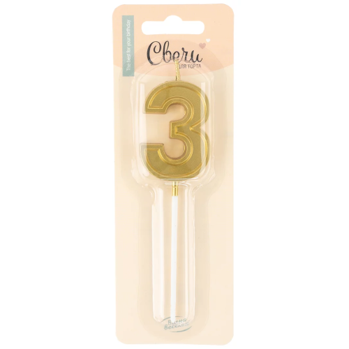 Свеча Цифра, 3 Чистая линия, на шпажке, Золото, 4,7*6,7 + 7 см, 1 шт. с держат., 803273