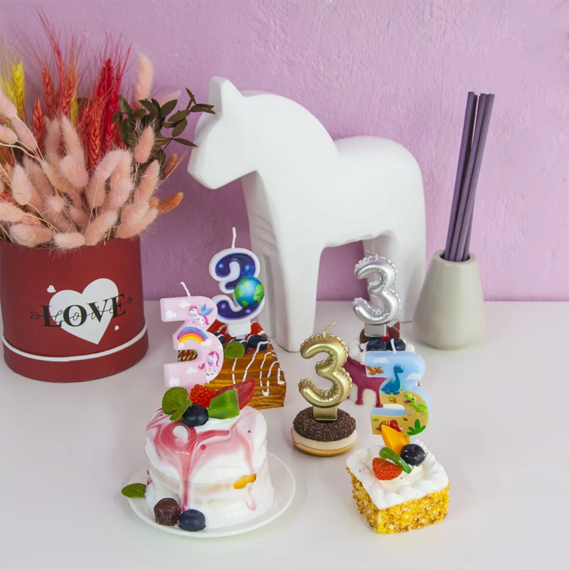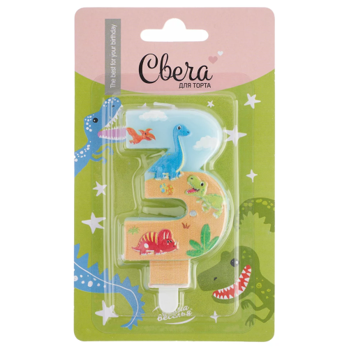 Свеча Цифра, 3 Динозаврики, 9 см, 1 шт. с держат., 622993
