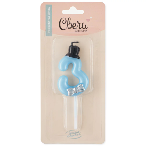 Свеча Цифра, 3 Джентльмен, 3,5*6 + 4,5 см, 1 шт. с держат., 803003