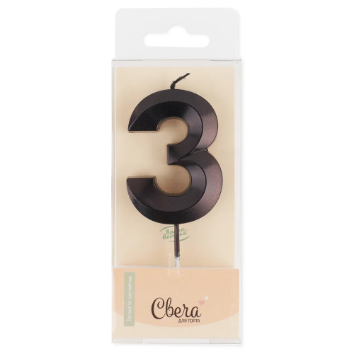 Свеча Цифра, 3 Грани, Черный, Металлик, 4,2*6 + 4,5 см, 1 шт. с держат., 803173