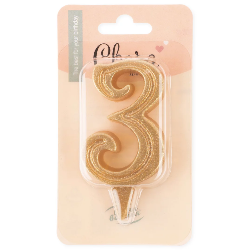 Свеча Цифра, 3 Грация, Золото, с блестками, 7 см, 1 шт., 2028