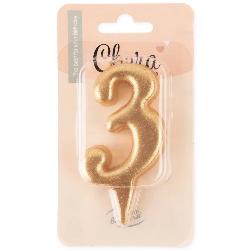 Свеча Цифра, 3 Овал, Золото, с блестками, 7 см, 1 шт., 1600