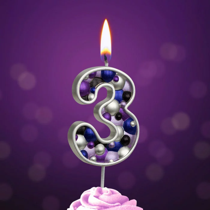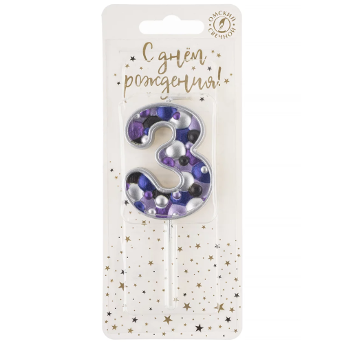 Свеча Цифра, 3 Пузырьки, на шпажке, Сиреневый, Металлик, 4*5,5 + 4 см, 1 шт. с держат., 5583