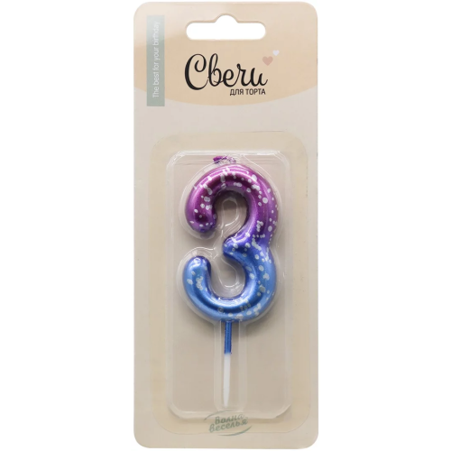 Свеча Цифра, 3 Сияющий космос, на шпажке, Градиент, 6 + 3 см, 1 шт. с держат., 802903