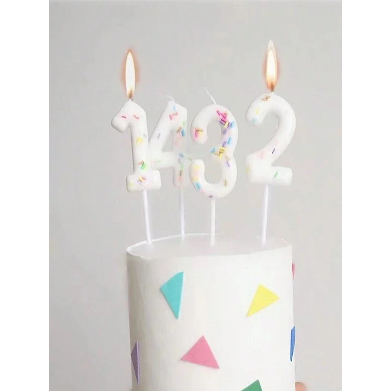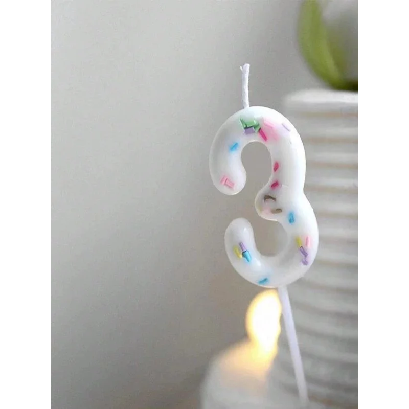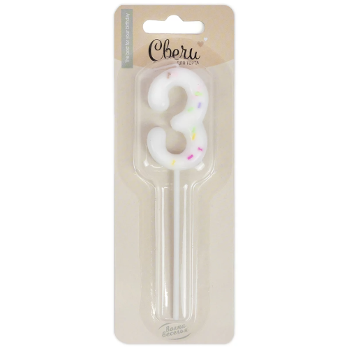 Свеча Цифра, 3 Сладкое конфетти, на шпажке, Белый, 5 + 7 см, 1 шт. с держат., 802843