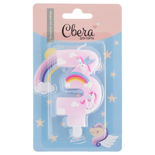 Свеча Цифра, 3 Волшебные единороги, Розовый, 9 см, 1 шт. с держат., 622983
