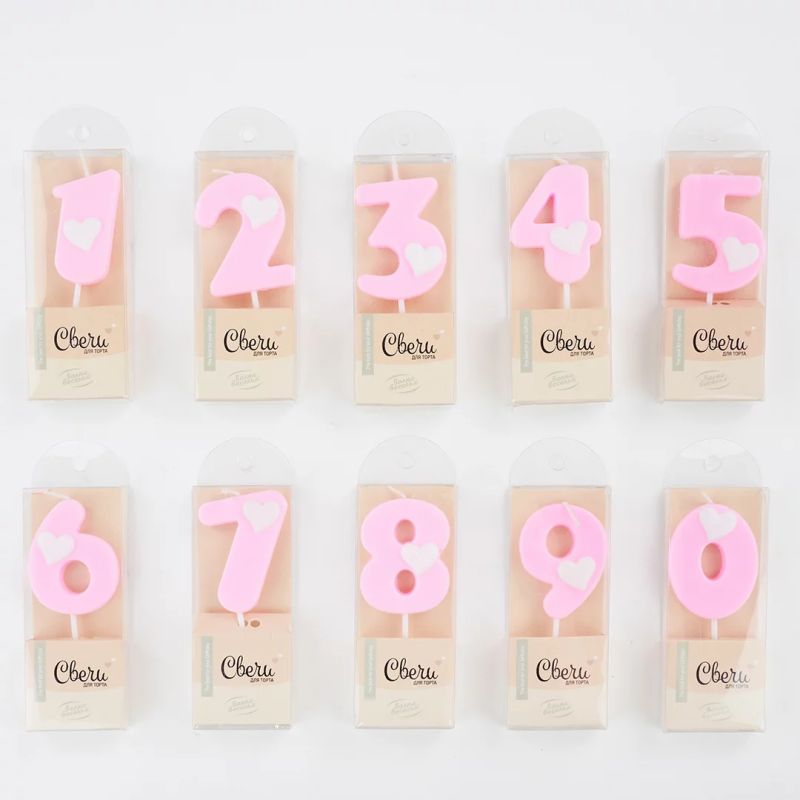 | Линейка | Свеча Цифра, Белое сердечко, Розовый |