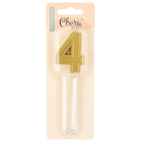 Свеча Цифра, 4 Чистая линия, на шпажке, Золото, 4,7*6,7 + 7 см, 1 шт. с держат., 803274