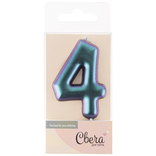 Свеча Цифра, 4, Фантом, Хамелеон, 4*6 + 2,5 см, 1 шт. с держат., 639254