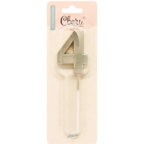 Свеча Цифра, 4 Грани, на шпажке, Белое золото, Металлик, 3,5*5 + 7 см, 1 шт. с держат., 802984