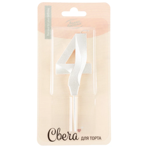 Свеча Цифра, 4 Грани, на шпажке, Жемчужный, Перламутр, 3,5*6,5 + 3,5 см, 1 шт. с держат., 3044