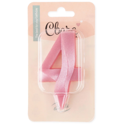 Свеча Цифра, 4 Грани, Розовый, 7 см, 1 шт., 1747
