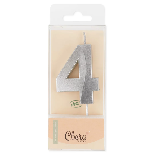 Свеча Цифра, 4 Грани, Серебро, Металлик, 4,2*6 + 4,5 см, 1 шт. с держат., 802754