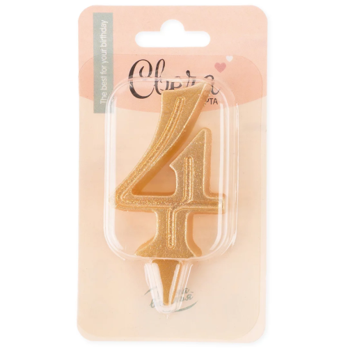 Свеча Цифра, 4 Грация, Золото, с блестками, 7 см, 1 шт., 2029