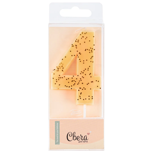 Свеча Цифра, 4, Кремовый, с блестками, 4,3*7,5 + 4,5 см, 1 шт. с держат., 803194
