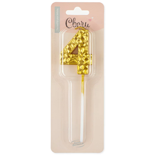 Свеча Цифра, 4 Кристалл, Золото, Металлик, 3,5*4,5 + 7 см, 1 шт. с держат., 802994