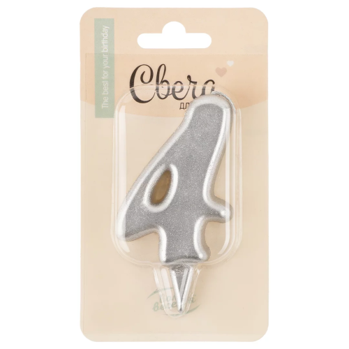 Свеча Цифра, 4 Овал, Серебро, Металлик, 7 см, 1 шт., 1560