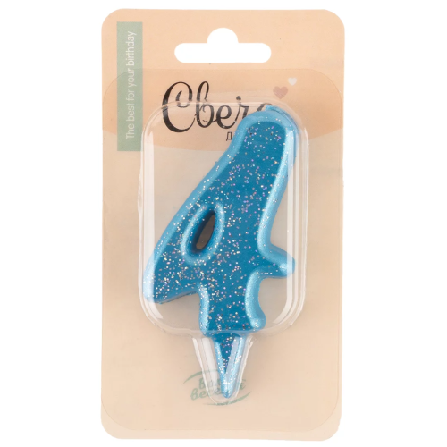 Свеча Цифра, 4 Овал, Синий, с блестками, 4*8 см, 1 шт., 1500