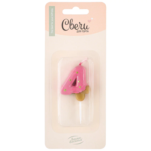 Свеча Цифра, 4 Пончик, Клубничная глазурь, 2,5*4 + 3 см, 1 шт. с держат., 802854