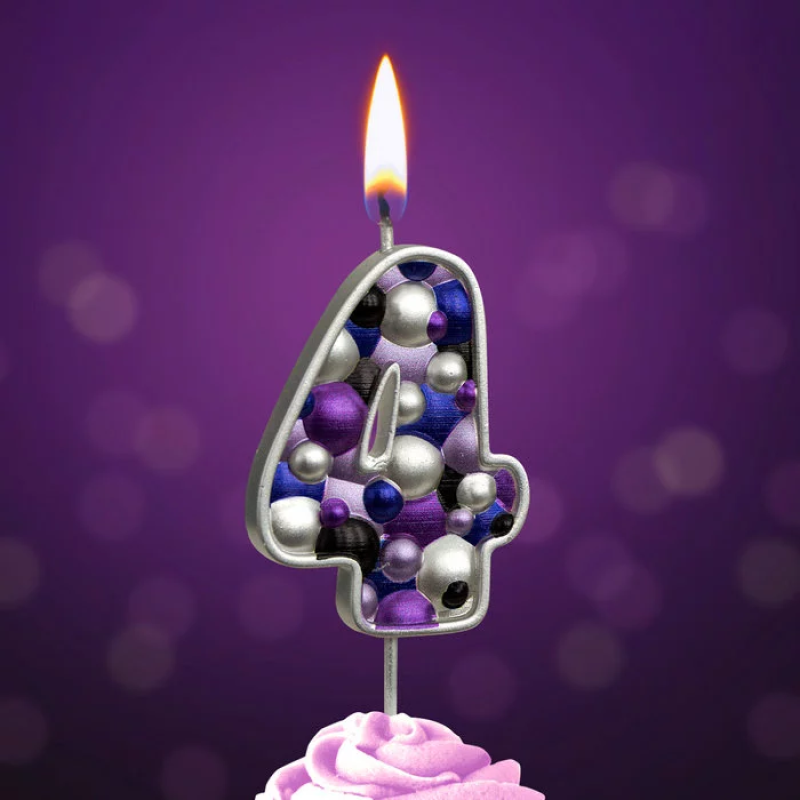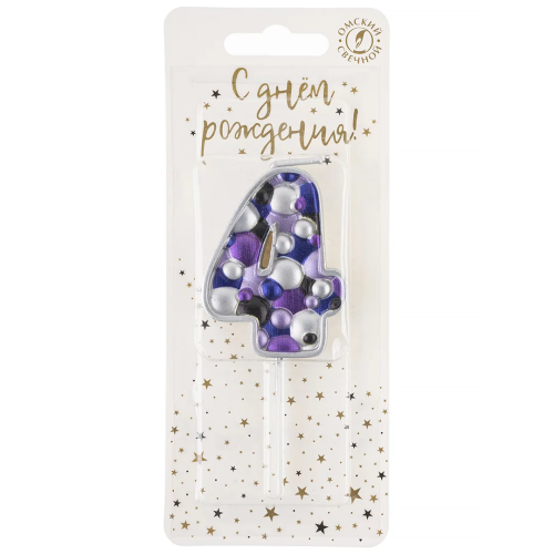 Свеча Цифра, 4 Пузырьки, на шпажке, Сиреневый, Металлик, 4*5,5 + 4 см, 1 шт. с держат., 5584