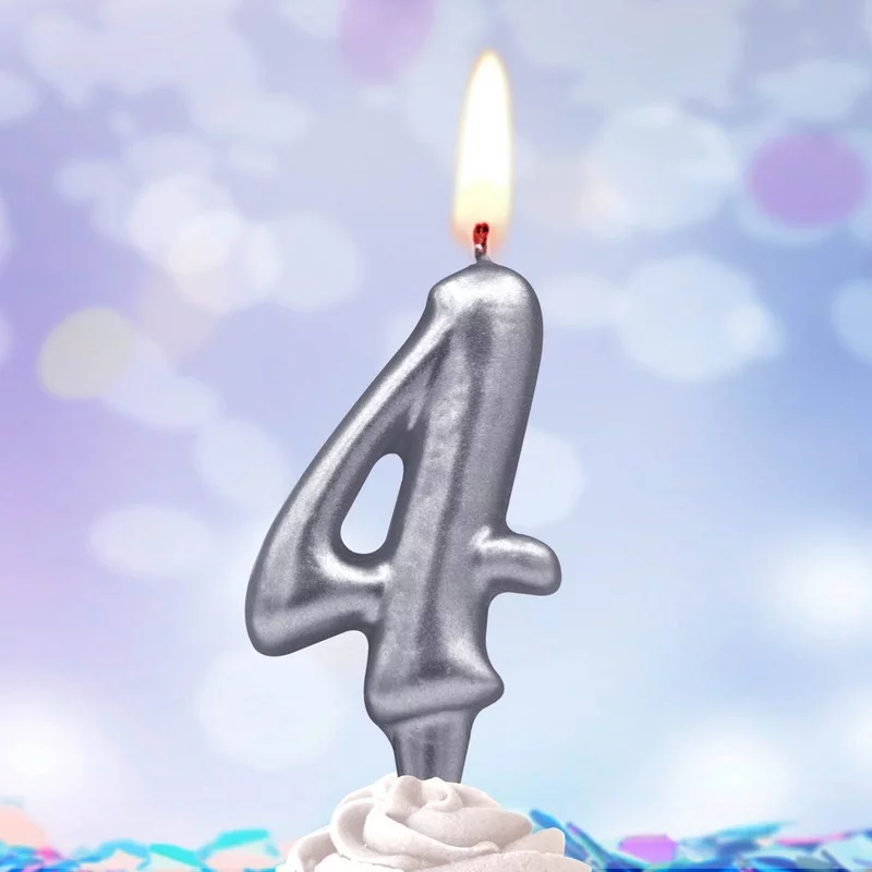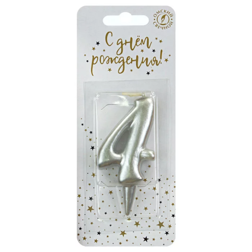 Свеча Цифра, 4, Серебро, 6 см, 1 шт., 3134