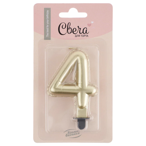 Свеча Цифра, 4 Воздушный шарик, Золото, Металлик, 5*7 + 1 см, 1 шт. с держат., 622954