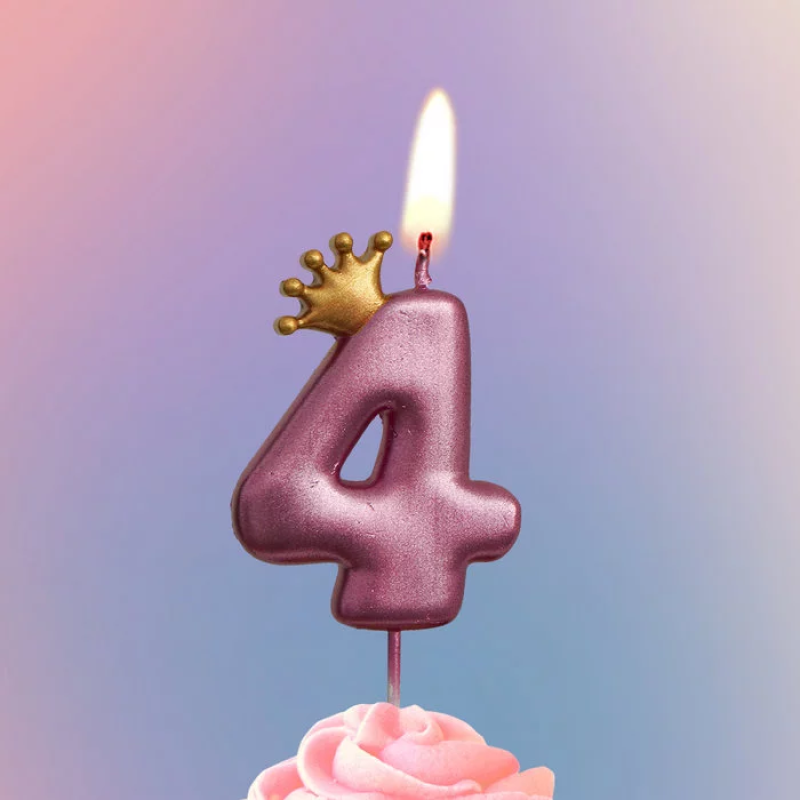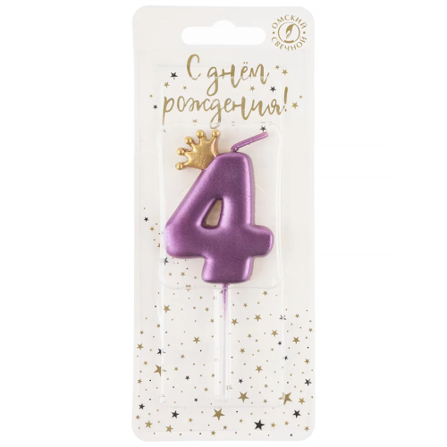 Свеча Цифра, 4 Золотая корона, на шпажке, Ярко-розовый, Металлик, 4*5,5 + 4 см, 1 шт. с держат., 4774