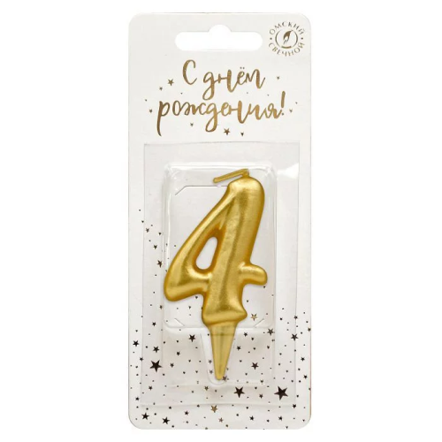 Свеча Цифра, 4, Золото, 6 см, 1 шт., 3084