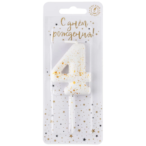 Свеча Цифра, 4 Золотые брызги, на шпажке, Белый, Металлик, 4,3 + 5,2 см, 1 шт. с держат., 5644