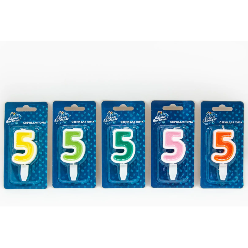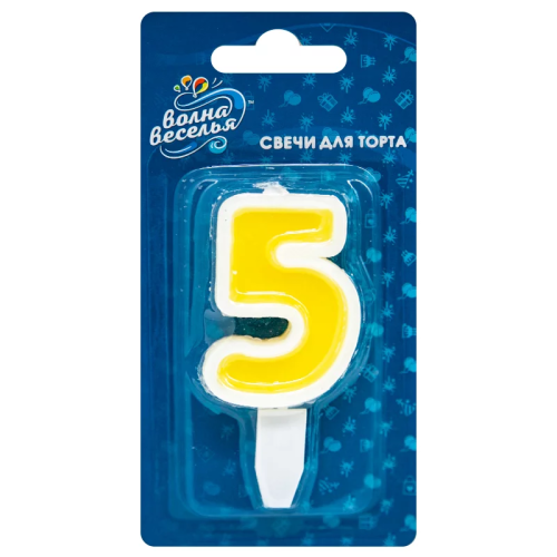 Свеча Цифра, 5 Белая окантовка, 5 см, 1 шт. с держат., 132605