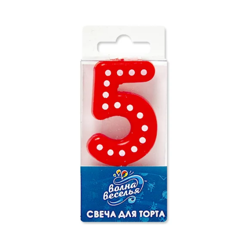 Свеча Цифра, 5 Белые точки, Красный, 3*4,5 + 1,5 см, 1 шт. с держат., 803145
