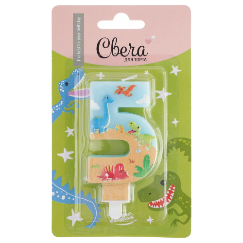 Свеча Цифра, 5 Динозаврики, 9 см, 1 шт. с держат., 622995