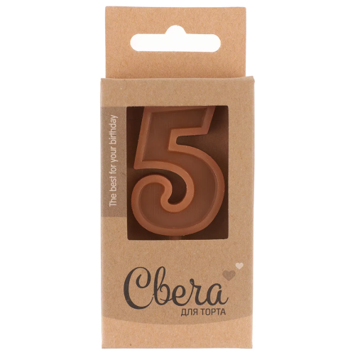 Свеча Цифра, 5 ЭКО, Шоколадное ассорти, Кофейный, 3*4,5 + 3,5 см, 1 шт. с держат., 803235