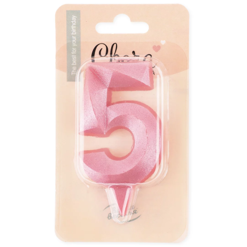 Свеча Цифра, 5 Грани, Розовый, 7 см, 1 шт., 1748