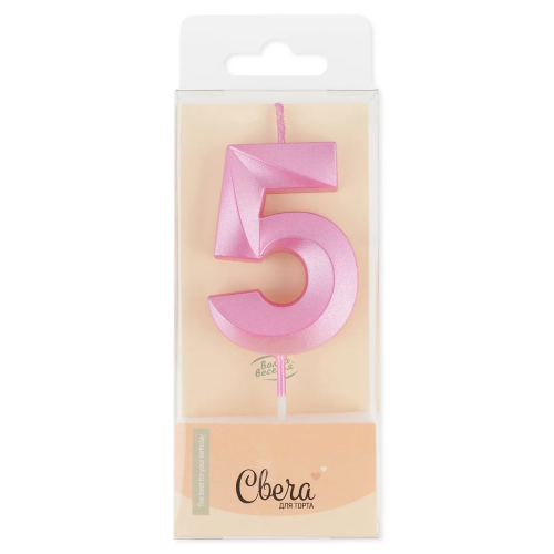 Свеча Цифра, 5 Грани, Розовый, Перламутр, 4,2*6 + 4,5 см, 1 шт. с держат., 802765