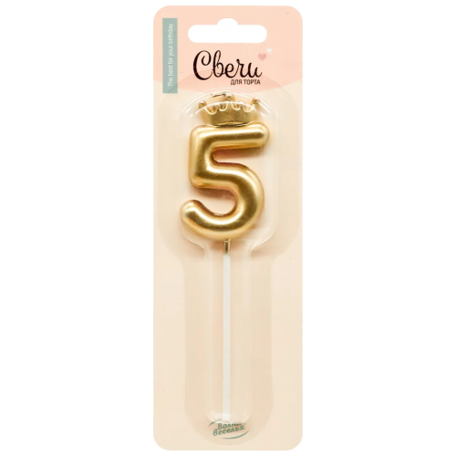 Свеча Цифра, 5 Корона, на шпажке, Золото, Металлик, 3,5*5,5 + 6,5 см, 1 шт. с держат., 803075