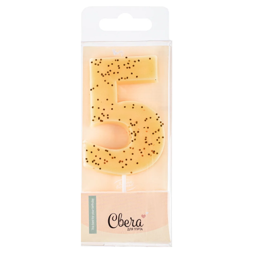 Свеча Цифра, 5, Кремовый, с блестками, 4,3*7,5 + 4,5 см, 1 шт. с держат., 803195