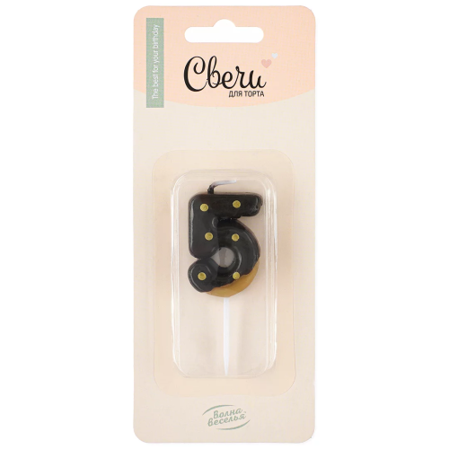 Свеча Цифра, 5 Пончик, Шоколадная глазурь, 3,5*4 + 3 см, 1 шт. с держат., 802865