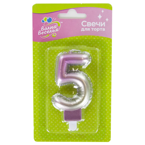 Свеча Цифра, 5, Розовый, Градиент, 7,5 см, 1 шт. с держат., 622975