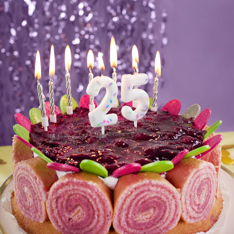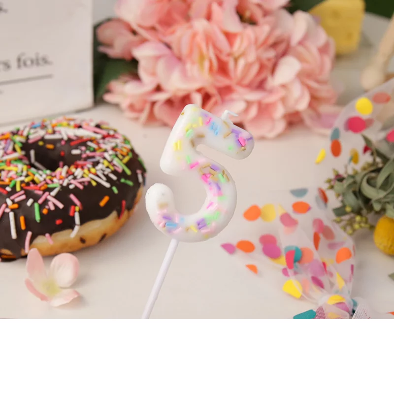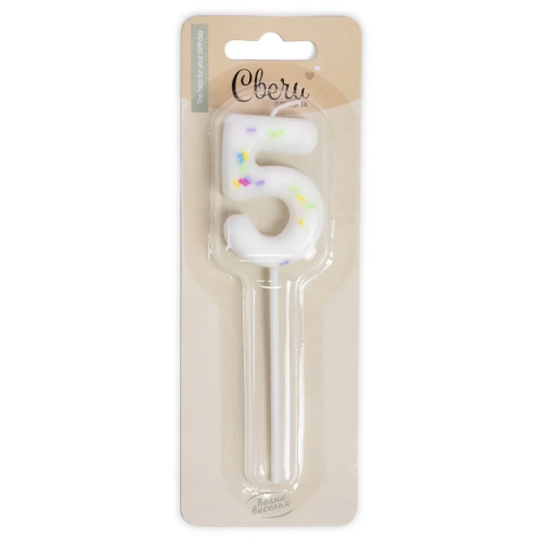 Свеча Цифра, 5 Сладкое конфетти, на шпажке, Белый, 5 + 7 см, 1 шт. с держат., 802845