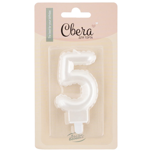 Свеча Цифра, 5 Воздушный шарик, Жемчужный, Перламутр, 5*7 + 1 см, 1 шт., 639265