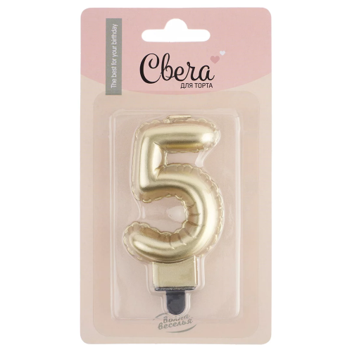 Свеча Цифра, 5 Воздушный шарик, Золото, Металлик, 5*7 + 1 см, 1 шт. с держат., 622955