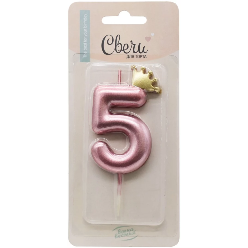 Свеча Цифра, 5 Золотая корона, на шпажке, Розовый, Металлик, 4,5*7 + 3,5 см, 1 шт. с держат., 802815