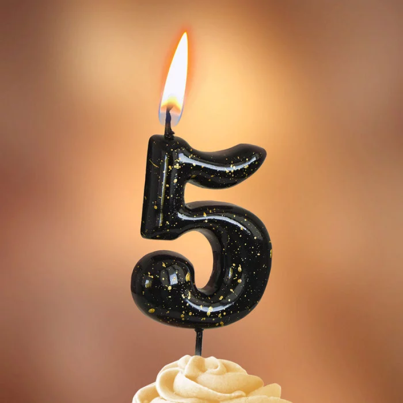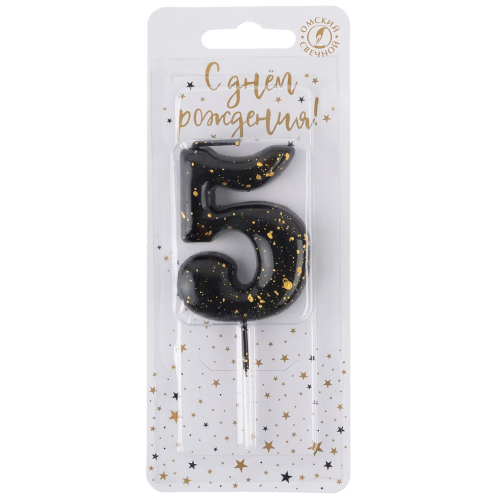 Свеча Цифра, 5 Золотые брызги, на шпажке, Черный, Металлик, 4,3 + 5,2 см, 1 шт. с держат., 5635